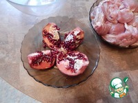 Смешиваем их с мясом и зёрнами граната. Даём помариноваться около часа |