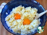 Желтки отделить от белков. Добавить к рису желтки и снова перемешать. |