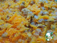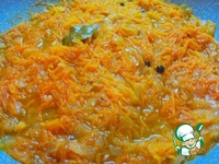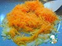 Морковь натрите на мелкой терке и отправьте к луку, обжарьте 3-4 минуты |