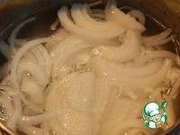 Воду (500мл, указанных в рецепте)немного нагреть и подсолить. Замочить в ней лук до остывания |