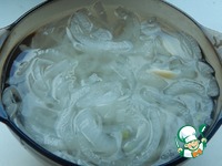 В закипевшую воду (количество произвольное)-опускаем нарезанный лук на несколько минут |