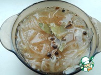 Добавить к луку специи, оставить на 30минут как минимум. Можно перед добавлением специй слить половину воды-будет острее, но это на любителя |