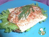 Собираем бутерброд. На ломтик ржаного хлеба кладем листья салата. На салат ломтик сыра. Затем нашу котлетку. Украшаем веточкой укропа и посыпаем красной сладкой паприкой. |