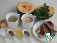 Подготовить ингредиенты. Киноа отварить в мясном бульоне. |