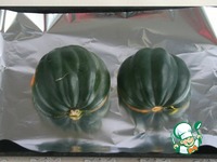 Акорн (тыкву) разрезать пополам, посолить, выложить на лист разрезом вниз. Запекать 40 минут при 200 С |