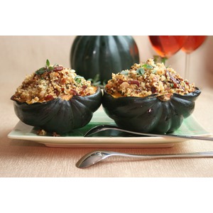 Перевернуть половинки акорн сквоша и заполнить начинкой. Понизить температуру до 180 С и запекать еще 20 минут Подавать теплым. |