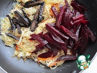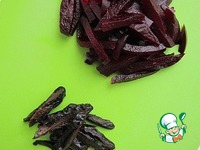 Отварную свеклу очистить и нарезать соломкой толщиной 0,5 см или измельчить её на корейской тёрке - это решать вам.