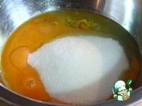 Яйца, желтки, сливки и сахар хорошо размешать. Добавить лимонный сок и щепотку соли, размешать. |
