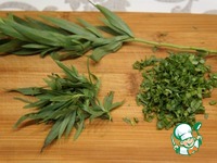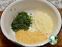 Пармезан натереть на мелкой терке. Смешать в миске 2 ст. л. пармезана, сухари и мелко нарезанные листики эстрагона, перемешать. |