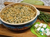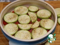 Форму для запекания смазать маслом, выложить половину кабачков, слегка посолить и поперчить. |