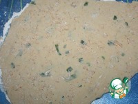 Раскатать тесто в лепешку, сверху посыпать оставшимися креветками и прокатать скалкой |