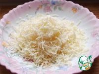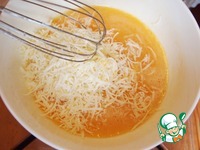 Соединить яйца с маслом (не горячим), сыром и молоком. |