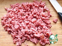 Добавить в тесто салями, перец, петрушку и хмели-сунели. Перемешать и выложить тесто в форму (у меня силиконовая, поэтому не смазывала маслом). |
