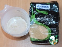 В теплом молоке растворить 60 г коричневого сахара, добавить 1 ст. л. содового раствора, перемешать. |
