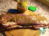 Затем закроем его обратно, смажем зерновой горчицей и "посолим" остатками желатина с солью. |