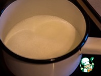 Как только молоко закипит - вылить в мучную смесь и заварить жидкое тесто. Оставить немного остыть. |