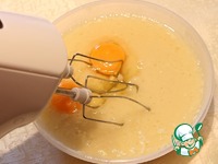 Когда смесь остынет, можно добавить яйцо, желток и ванильный сахар. Всё это взбить миксером (пены, конечно не получится, смесь лишь немного увеличится в объёме). |