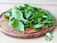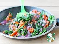 На оливковом масле обжарить пару минут лук, помидор и шпинат, приправить по вкусу. Долго жарить не надо, только слегка спассеровать до мягкости. |