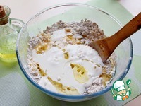 Добавить к муке сыр с розмарином, кефир и ол масло. |