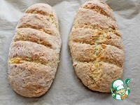 Разделить тесто на 2 части и сформировать 2 батона. Выпекать при 180 гр 30 мин. |