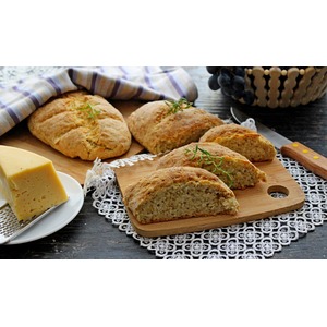 В меру рассыпчатый, с привкусом сыра и ароматом розмарина! Готовится без дрожжей, что очень часто бывает, кстати. Обязательно попробуйте приготовить этот хлеб, хотя бы 1 раз, уверена, не пожалеете!!!