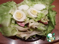 Далее посыпем второй половиной нарезанного айсберга и выложим сверху варёное яйцо. |
