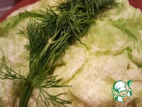 А теперь завернём листья салата, немного в шутку, как будто Вы оставили просто айсберг))). Я немного связала укропом, чтоб не заветривался и намекал на сюрприз внутри. |