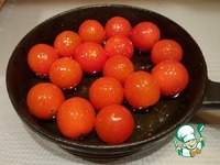 Потом помидорки. Я добавила при обжарке помидорок соевый соус. |