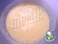 Делаем тесто: Яйца взбить с солью и сахаром. Добавить кефир и растопленное масло. Перемешать. |