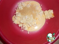 К размягченному маслу добавить сахар, творог, муку с разрыхлителем, щепотку соли. Замесить тесто и выложить в холодильник на 20-25 минут. |