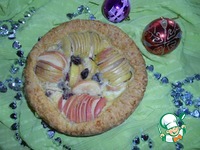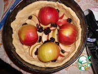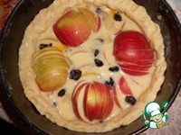 Описание: Вкусный пирог на творожном тесте, с яблоками и вяленой вишней, под нежной йогуртовой заливкой. Ингредиенты даны в рецепте на большой пирог. Я приготовила мини-пирог.