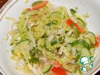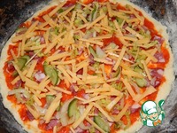 Еще у меня оставался салат (огурцы, помидоры, лук, пекинская капуста). Понятное дело, с начинкой можно экспериментировать как угодно. Это же пицца!!! |