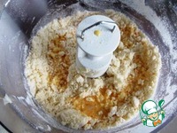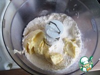 Первым делом готовим тесто. Просеянную муку смешиваем с сахаром и солью. Холодное масло нарезаем кубиками. Отправляем муку и масло в чашу блендера |