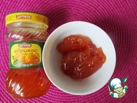 Откладываем в чашку 3 столовых ложки абрикосового джема и разогреваем его в МВП около 1 минуты |
