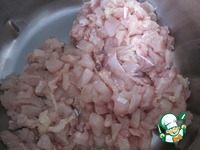 Добавляем нарезанную кубиками печень и куриные сердечки. |