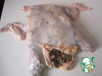 Описание: Фаршированная курица без костей отлично подойдет в качестве главного блюда на праздники. Фаршировка способна придавать совершенно обычным продуктам новый вкус. Результат порадует гостей и по вкусу и тот факт, что не надо отделять кости во время праздника.