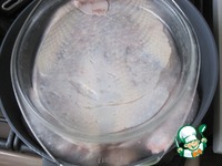 Укладываем на разогретую сковороду. Я покрыла стеклянной крышкой и поставила полный чайник, для пресса. Жарим до готовности. |