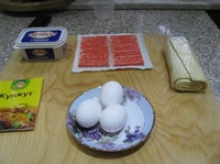 Тесто разморозить. Подготовить остальные продукты. |