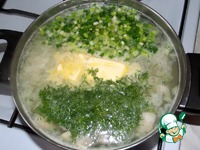 В готовую похлебку добавить зелень и сливочное масло. Дать настояться минут 10. |