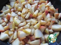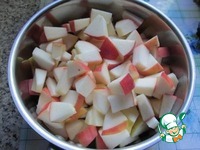 Из яблок удаляем семенную коробочку и нарезаем немелкими кусочками. Если кожица яблок тонкая, то её можно не счищать. Разогреваем духовку до 200 град. |