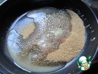 В глубокой сковороде растапливаем 50 г сливочного масла, высыпаем 100 г сахара и готовим на сильном огне, пока сахар не начнёт краснеть |