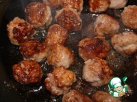 Слегка припудрить фрикадели мукой и обжарить со всех сторон до золотисто-коричневого цвета. Откинуть на бумажное полотенце. |