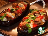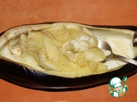 Удалить мякоть, оставляя немного по бокам и внизу. Отложить "формочки" из баклажанов в сторонку. |