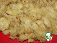 Рис обжарить в 2 ст. л. оливкового масла. Залить бульоном и варить до готовности. |