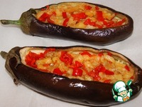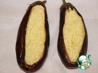 Заполнить баклажаны на 1/2 готовым рисом. |