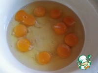 Тесто Шаг 1: Взбиваем яйца. (Не обращайте на количество яйц на фото, я готовила двойную порцию). Можно взбивать и венчиком, и миксером. Всё очень легко и просто. |
