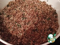 Заодно варим рис. Я сварила предварительно. ( Но чаще всего я тушу мясо, варю рис и жарю лук одновременно). Даже если рис переварится, не страшно, на вкус фарша это никак не повлияет. |