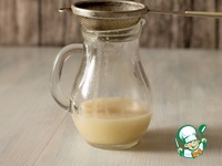 Заправка становится однородной смесью молочно-белого цвета. Затем смесь процеживаем через ситечко. |