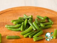 Стручковую фасоль разморозить и слегка бланшировать в горячей воде. Следите, чтобы она не потеряла свой цвет. |