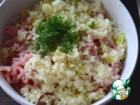 Также пропустить через мясорубку капусту и чеснок и добавить к фаршу. Порубить мелко свежий укроп и тоже добавить в фарш. Посолить, поперчить по вкусу и добавить смесь прованских трав (по желанию). |
